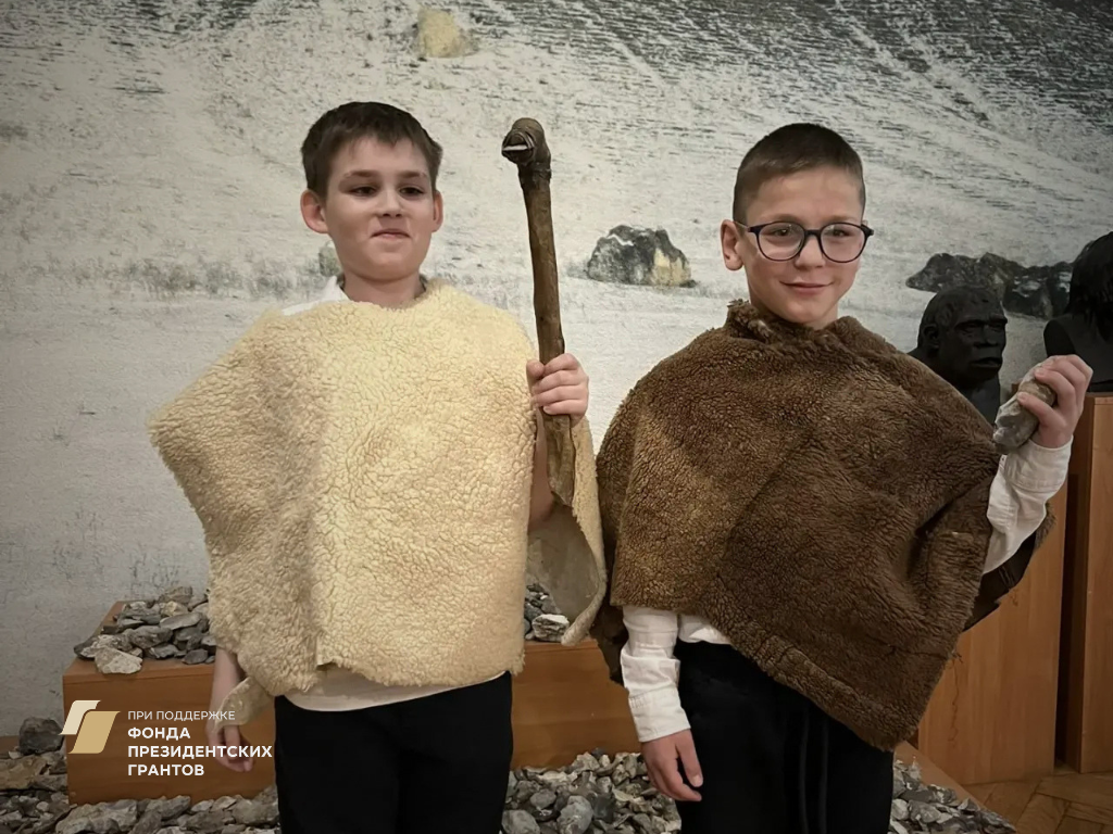 Во время предыдущего визита ребята знакомились с животным миром Крыма, а в этот раз их ждало настоящее путешествие в прошлое — в эпоху каменного века.